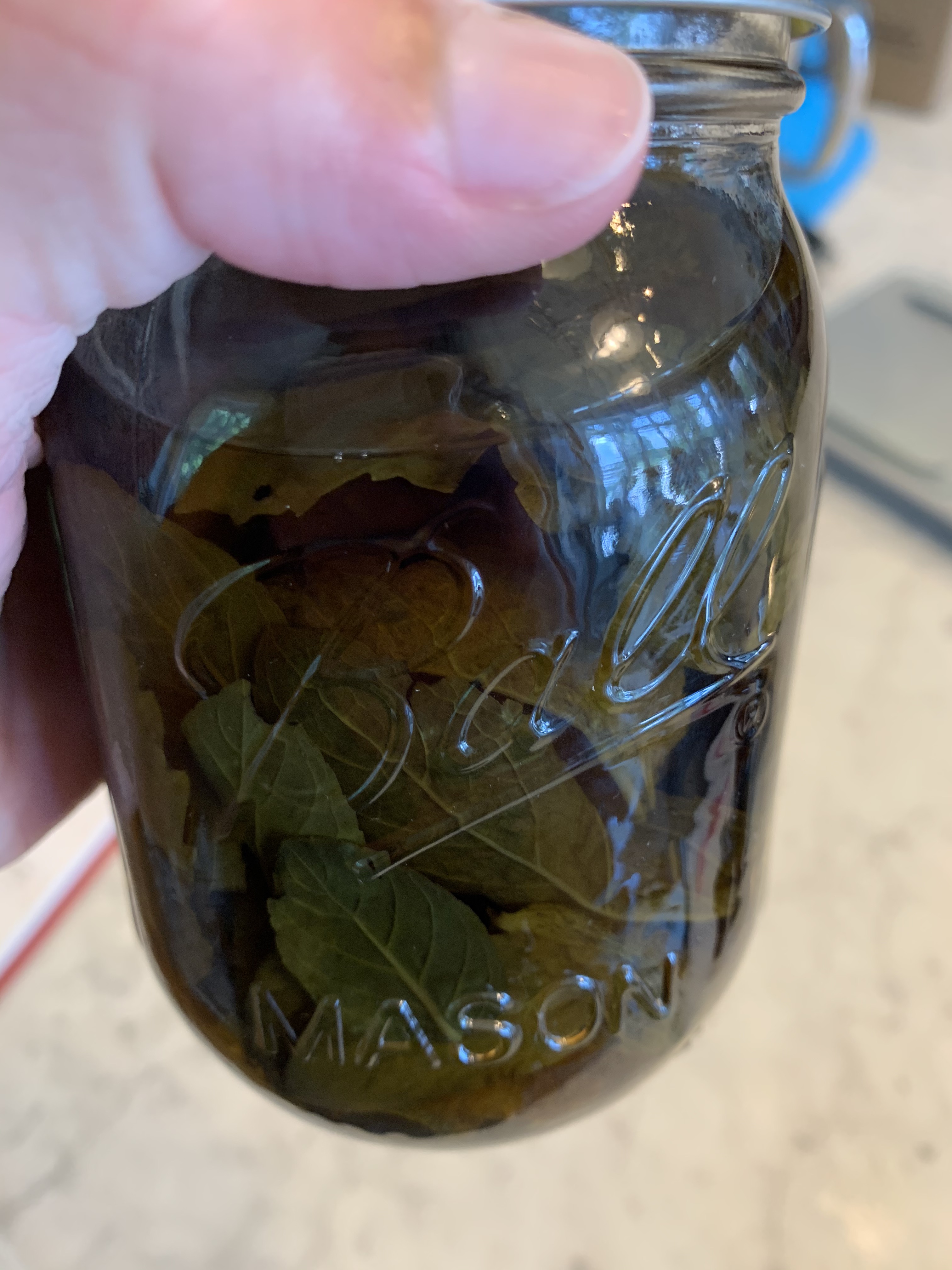Extract making is misleading! One day in, that jar was bright green and vibrant and full of promise! A few days later, it was brown- but such is the nature of leaves, so I wasn’t too worried. They’re soaking in vodka, what’s the worst that could happen??