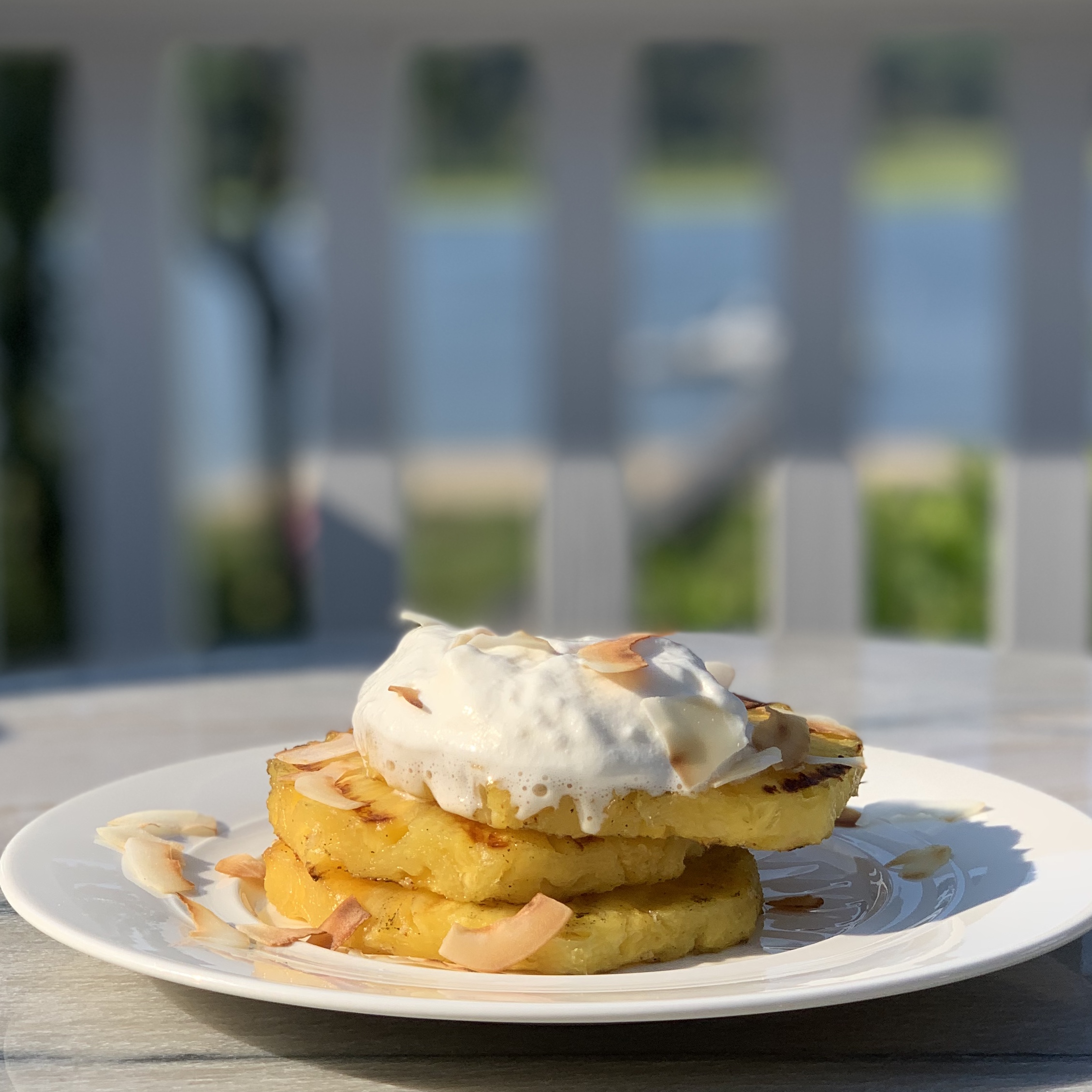 - Heat your grill (to about medium-high heat) and remove the pineapple slices from the water.
